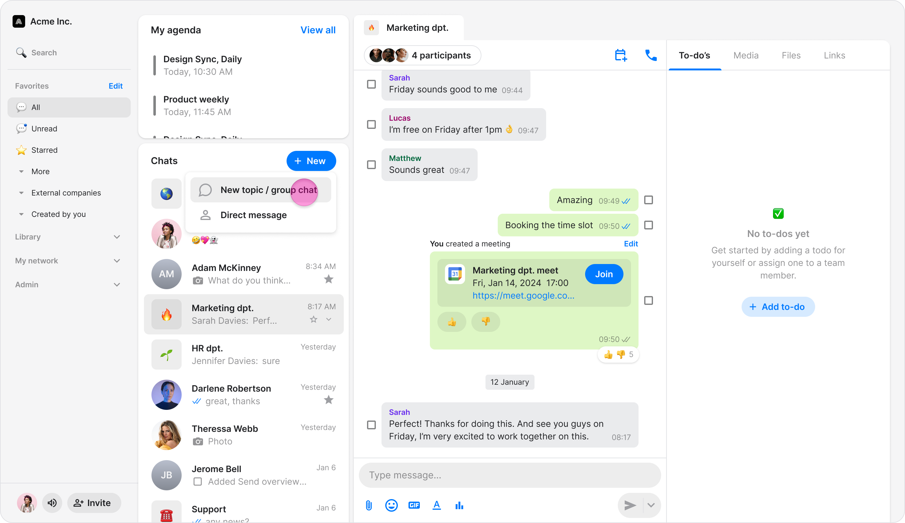 Start a new conversation with a group of team members to discuss projects, share ideas, or collaborate on tasks.