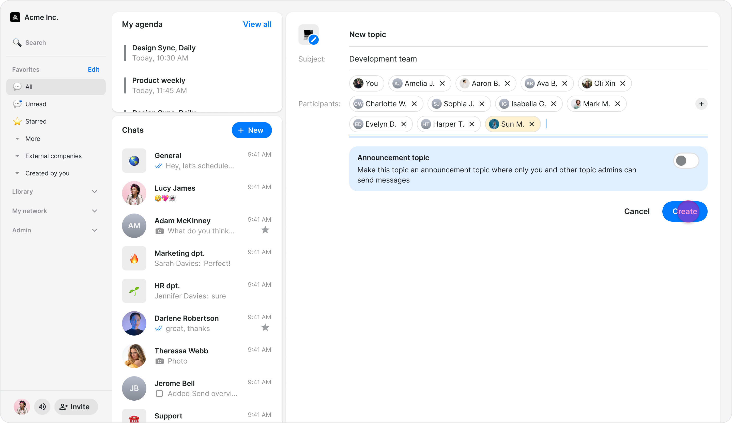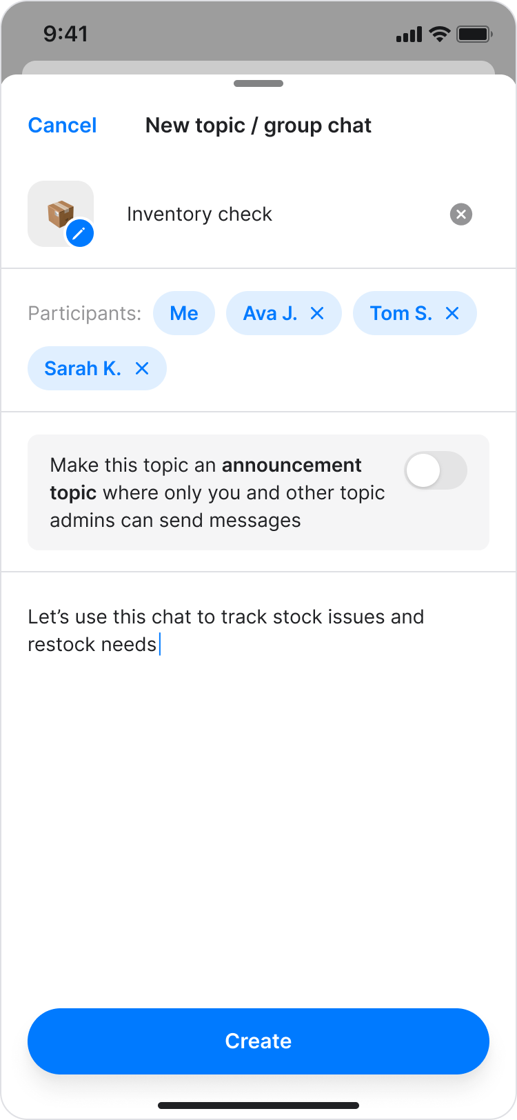 (Optional) Enable the “Make this topic an announcement topic” toggle to allow only admins to send messages in this topic.